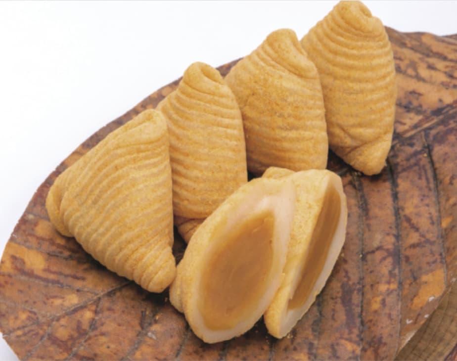 미치노에키 <노토치리하마> 오리지널 상품. 쌀가루를 사용해쫀득쫀득한 화과자입니다. 콩가루를 듬뿍 사용한 생지 안에 흑당(쿠로미츠)으로 만든 소를 넣었습니다.