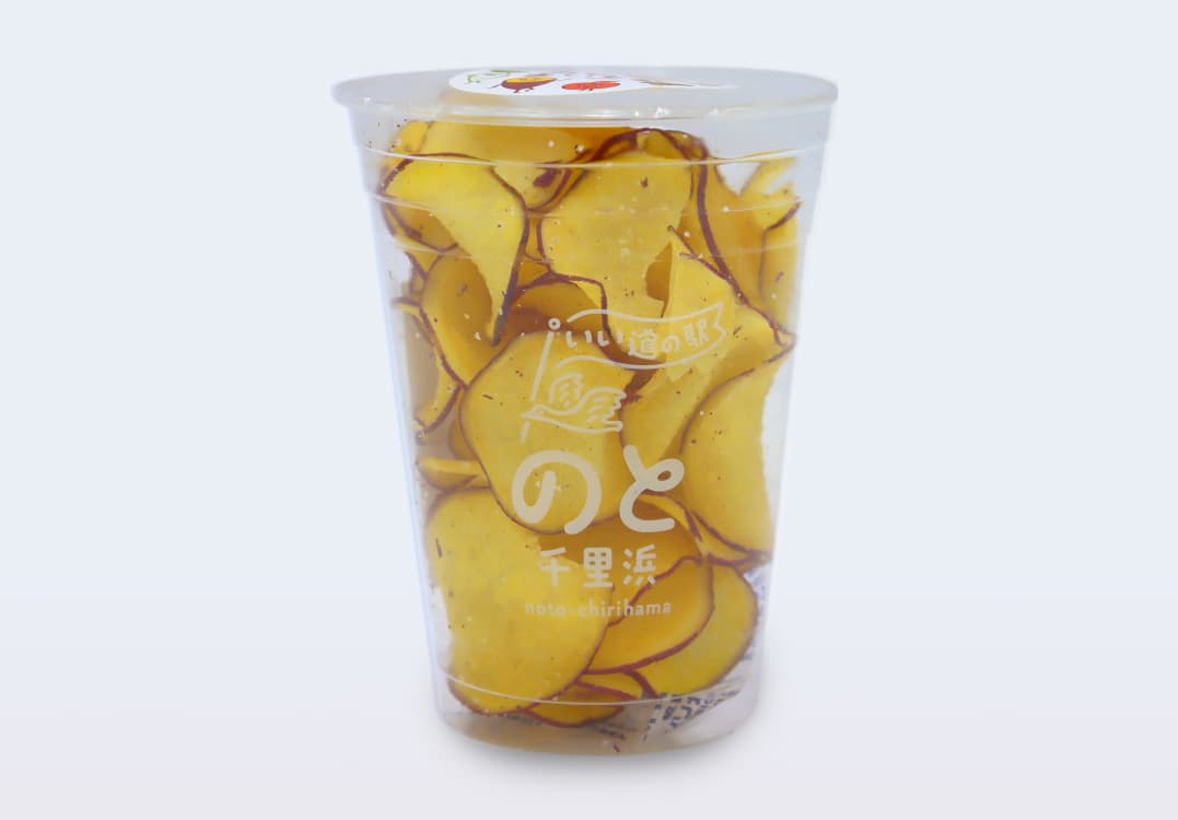 미치노에키 <노토치리하마> 오리지널 상품. 노토 지역산 고구마 베니하루카를 부드러운 페이스트로 개어 바삭한 달콤한 센베로 만들었습니다.