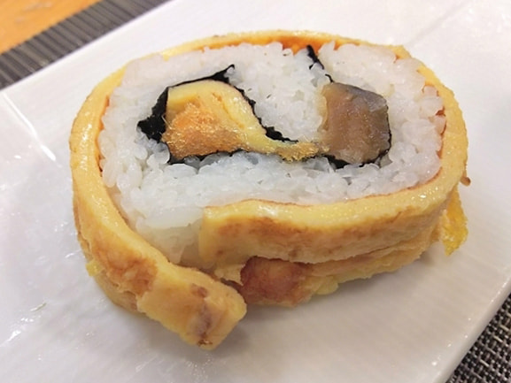 These sushi rolls are wrapped in egg rolls and have delicious sweetness from the egg and fluffy rice. It is made at Matsuno Sushi, a long-established sushi restaurant in Nanao which has inherited the amazing egg rolls that were presented to the 11th shogun of the Edo Shogunate, Ienari Tokugawa.