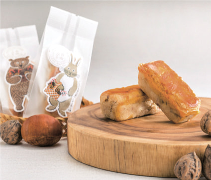 Kuzumawashi is a traditional mountain pastry made with sweetened chestnuts, walnuts and sweet potatoes, which are made sticky with rice flour. This is a simple baked pastry with a nostalgic flavour.Enjoy its sweet aroma.