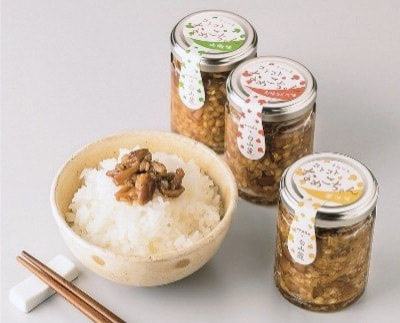 Sweet and spicy stew of boiled nameko mushrooms from the mountains around Hakusan or Mount Haku and buckwheat seeds which add a crunchy texture. All the ingredients are safe and locally produced, and the stylish labels are attractive to display in the kitchen.