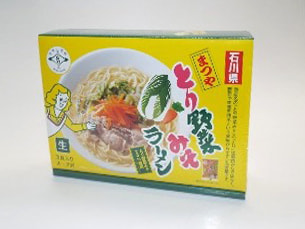 A package contains three servings of diluted ramen soup and ramen noodles made with Tori-Yasai Miso. No garnish is included. It is recommended to cook it with boiled Chinese cabbage or stir-fried pork as desired toppings.