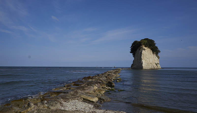 「見附島」是聳立於海面,高28公尺的能登象徵。因有岩石小道,也能夠靠近觀看。