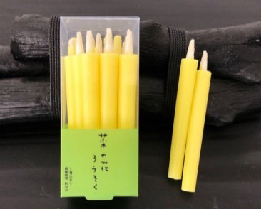 使用取自菜籽油的臘製成的菜之花蠟燭。點火後不易流下臘油,吹熄時的味道也被壓制得較不顯著,為對於環境及我們身體而言相對溫和的蠟燭。