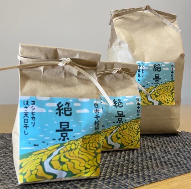 為富含黏土土質及極淨水質所孕育而出的、收穫自白米千枚梯田的稀少稻米。在迎著海風吹拂的千枚梯田中受到日照長成的米粒可謂真正的絕品。